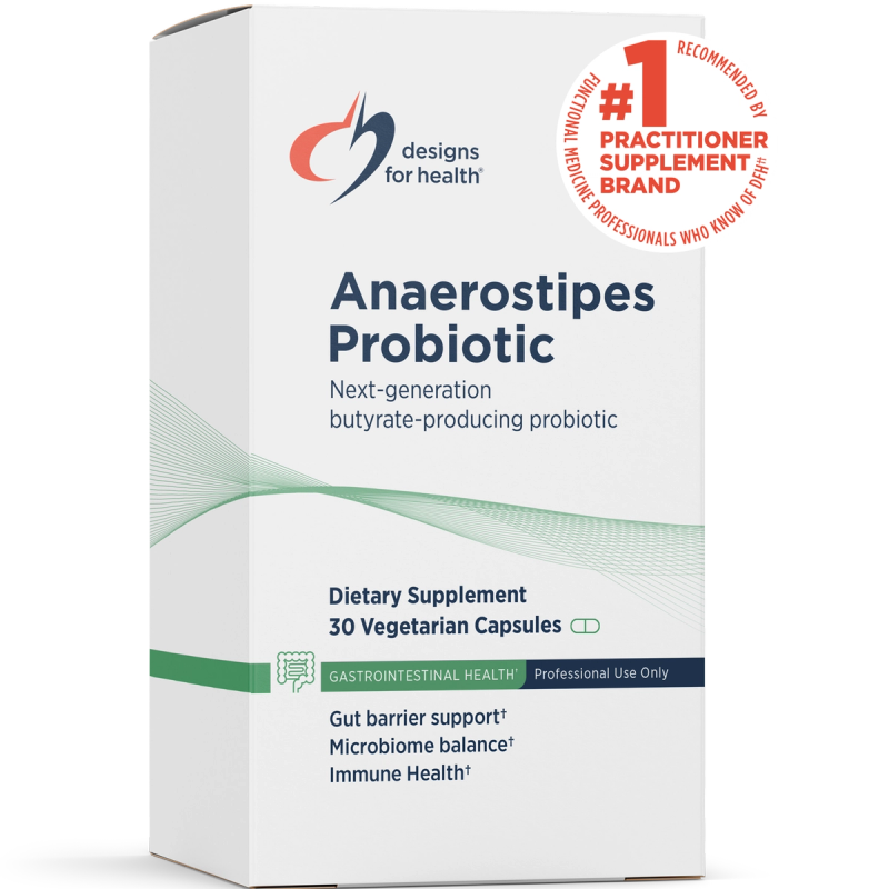 Anaerostipes Probiotic is a once-daily formula featuring a live, next-generation strain that is exclusive to the Designs for Health (DFH) brand.